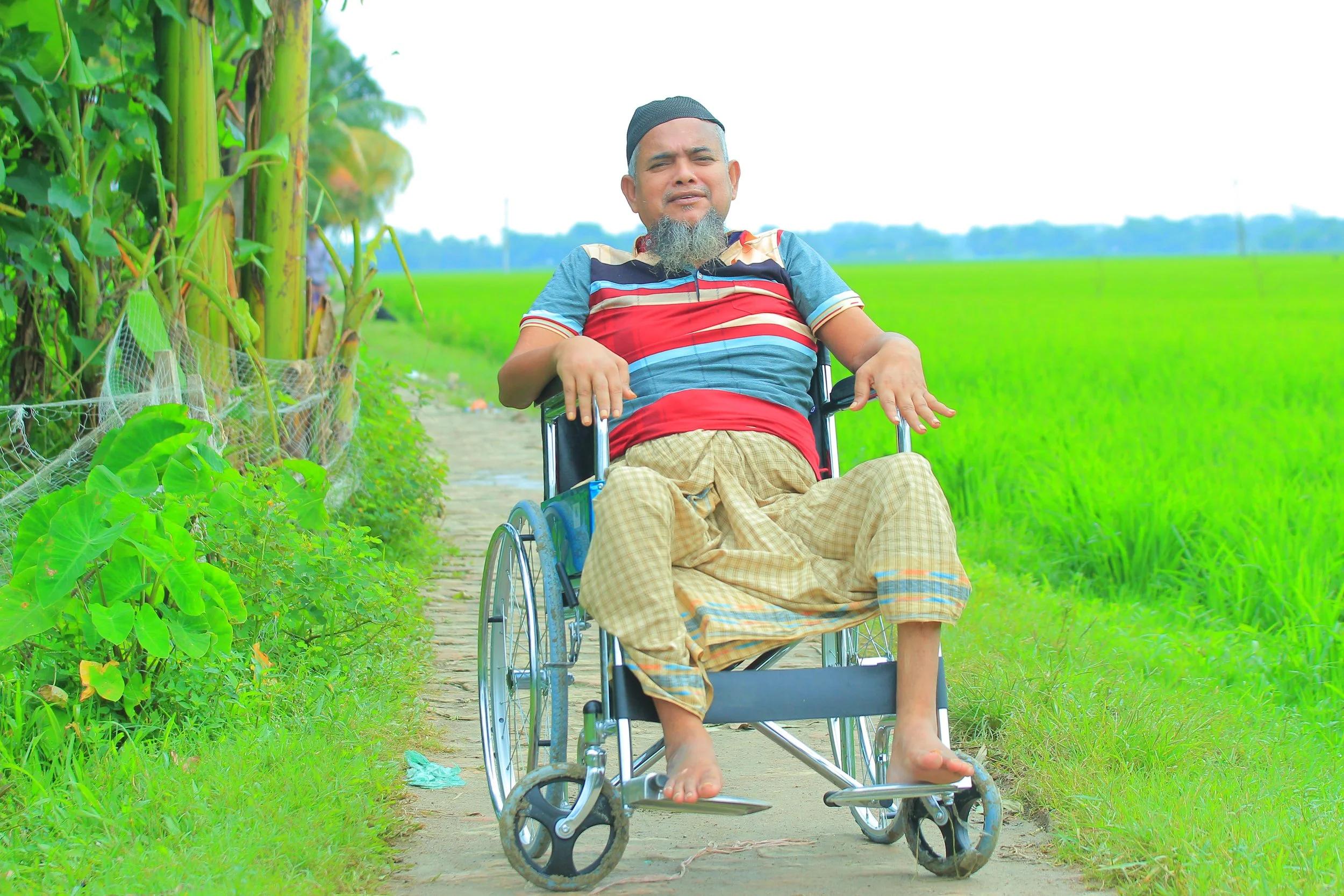 Abdul Huq is a local shopkeeper living in the area, in the Kalapara division of Patuakhali. Abdul Huq's life was a daily struggle: at the age of 42, he was diagnosed with diabetes, and his dire financial situation prevented him from seeking the treatment he needed. Tragically, this led to his paralysis, and he lost the use of both of his legs. Unable to afford a wheelchair, the simple act of moving from one place to another became a daunting challenge, and he relied on the generosity of others so that he could continue to provide for his family’s most fundamental needs, including food and clothing. In an area so affected by disasters such as cyclones, lack of mobility can pose a huge threat to his and his family's safety; persons with disabilities are frequently the most affected by natural hazards. Abdul Huq's experience highlights how disability and poverty can amplify the impacts of climate change, a complex struggle many face in the region.